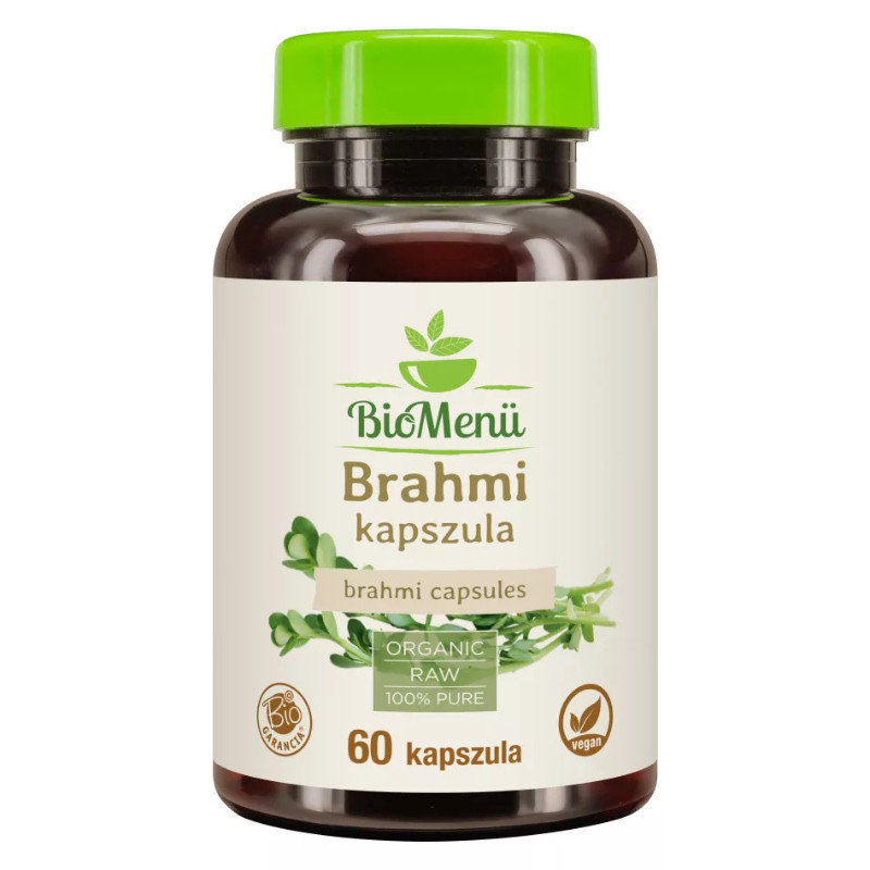 100% bio brahmi (bacopa monnieri, kislevelű bakopa) levél; csomósodást gátló anyag: szilícium-dioxid; kapszulahéj: hidroxipropil-metil-cellulóz; Allergének: nyomokban búzát, földimogyorót, dióféléket, szóját és szezámmagot tartalmazhat