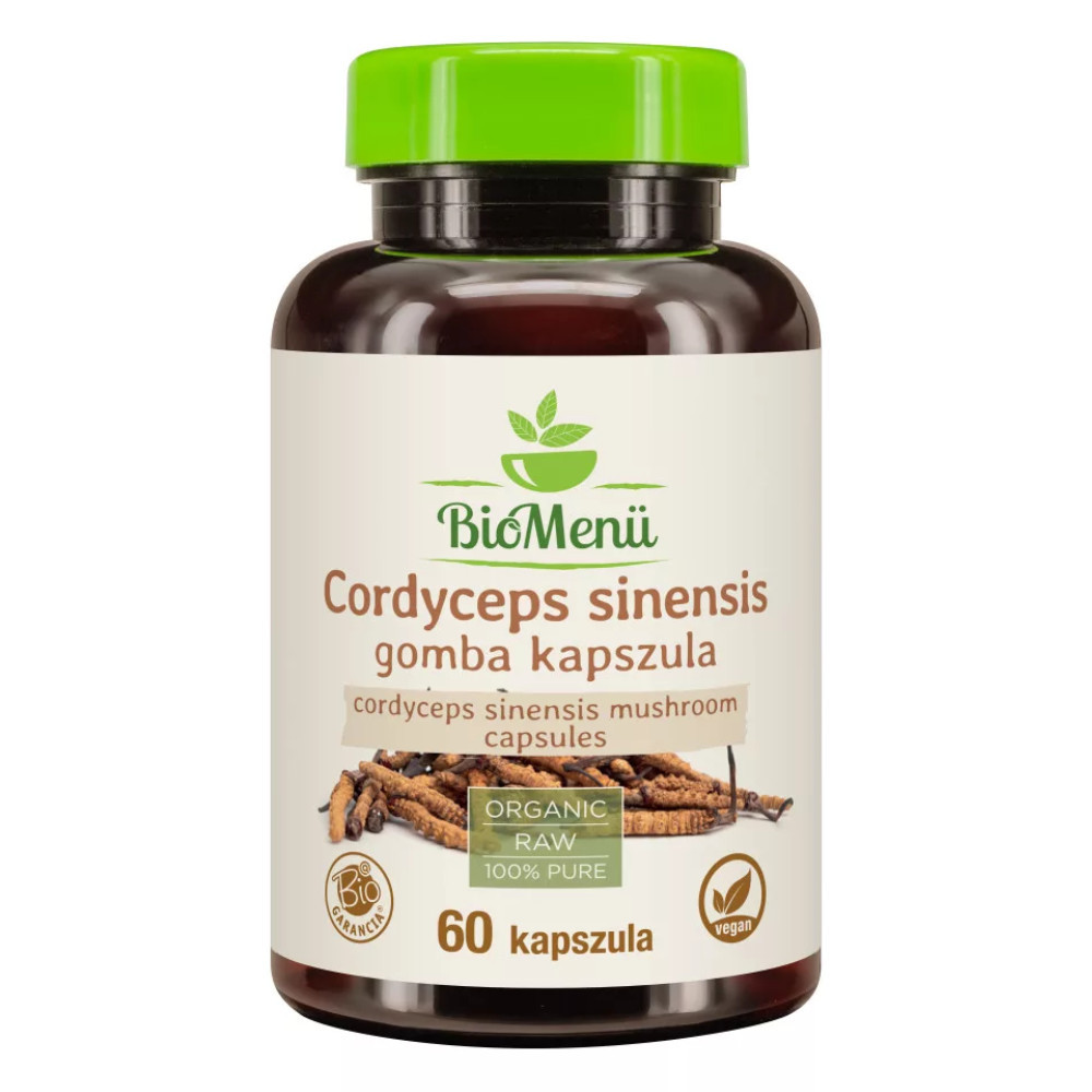 100% bio cordyceps sinensis gomba (kínai hernyógomba); csomósodást gátló anyag: szilícium-dioxid; kapszulahéj: hidroxipropil-metil-cellulóz