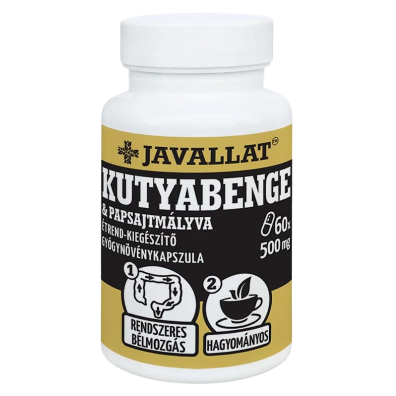 - A Kutyabenge és papsajtmályva termék fogyasztásának szünetében az alábbi termékek fogyasztásával támogathatja egészségmegőrzését: JAVALLAT® PuddinGo!, JAVALLAT® Útifű maghéj, JAVALLAT® Orvosi ziliz