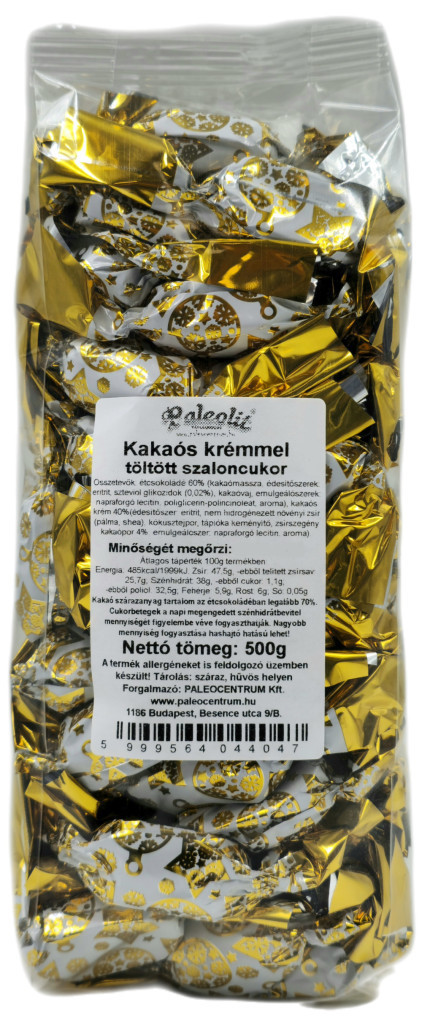 Összetevők: étcsokoládé 50% (kakaómassza, édesítőszer: eritrit(14%), kakaóvaj, emulgeálószer: napraforgó lecitin, édesítőszer:szteviol glukozidok(0,02%)), kakaós krém 50% (édesítőszer: eritrit(20%), nem hidrogénezett növényi zsír (pálma,shea) , kókusztejpor (10%), tápióka keményítő ,zsírszegény kakaópor (2%) ,emulgeálószer: napraforgó lecitin).
