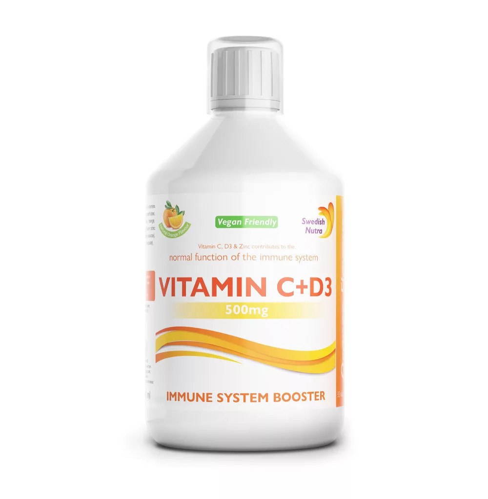 A Svédországban gyártott Swedish Nutra C+D3 vitamin egy finom, narancs ízesítésű folyékony étrend-kiegészítő, amely segít csúcsformába hozni az immunrendszert. A C-vitamin alkalmas a szervezet védekezőképességének fokozására, fogyasztásával nem kell attól tartanunk, hogy legyűrnek bennünket a fertőzések. Mivel a C-vitamin szerepet vállal az energia előállításban, a C+D3 vitamin alkalmazása segíthet a fáradtság leküzdésében, kellő energiát szolgáltatva a mindennapokhoz. Antioxidánsként elősegíti a túltermelődő szabad gyökök semlegesítését, amelyek növelik a rák, a gyulladások, a szív- és érrendszeri megbetegedések kockázatát, illetve fokozzák a sejtek és a bőr öregedését.A C+D3 folyékony vitamin formulájának köszönhetően elősegíti a hatékonyabb felszívódást, három kiemelkedően fontos vitamin koncentrációja pedig jótékonyan hatást gyakorol az immunrendszer működésére. C- és D3-vitamin, valamint cink tartalma hatékony támogatást nyújt a kimerültség és stressz leküzdésében, továbbá az általános közérzet és energiaszint javításában. A Swedish Nutra folyékony C+D3 vitamin természetes gyümölcsaromával készült, vegán, GMO és gluténmentes.